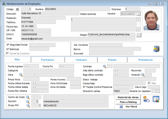 | Aparecen campos donde se deben introducir los datos de cada operario, para poder utilizarlos en el programa. | |||