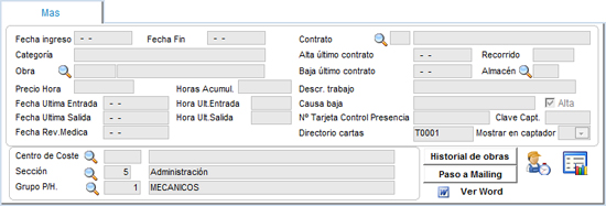 | Vincula un documento word al operario. Sirve para guardar cualquier información en formato word correspondiente al operario. | |||