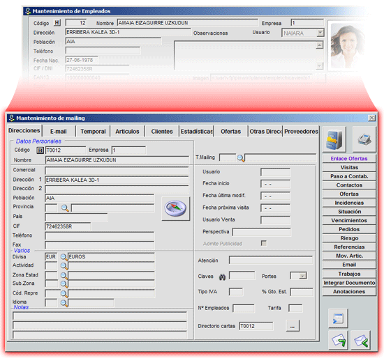 | Desde esta opcion se pueden introducir o modificar datos referentes a los operarios de la empresa. Aparecerá la siguiente pantalla: | |||