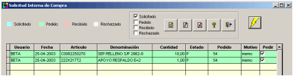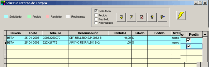 | Pulsando en la columna “Pedir” selecciona de qué solicitudes se realizará pedido: | ||