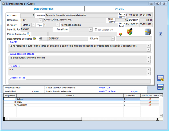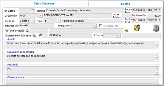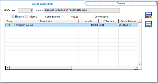 Es donde introducimos los diferentes costes del curso |