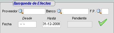 | Posibilidad de seleccionar efectos por Código de proveedor, Banco, Forma de pago y Fecha de Vto. Una vez seleccionados, le damos al botón aceptar y sacara los datos de los cobros: | |||||||||||||||||||||||||||||||||||