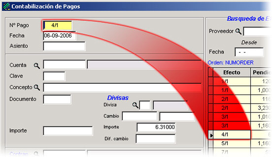 | Haremos clic sobre la primera columna de la línea deseada, de esta manera nos marcará en el campo N. Pago el número de orden: | |||||||||||||||||||||||||||||||||||